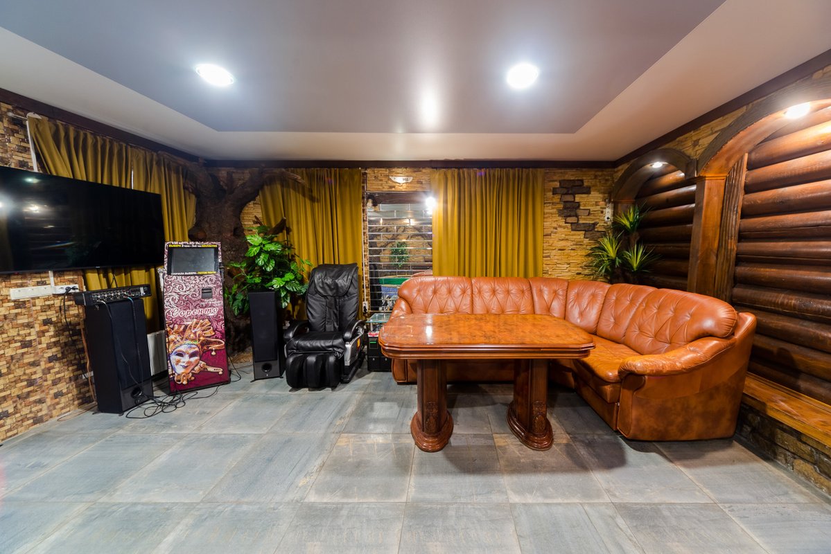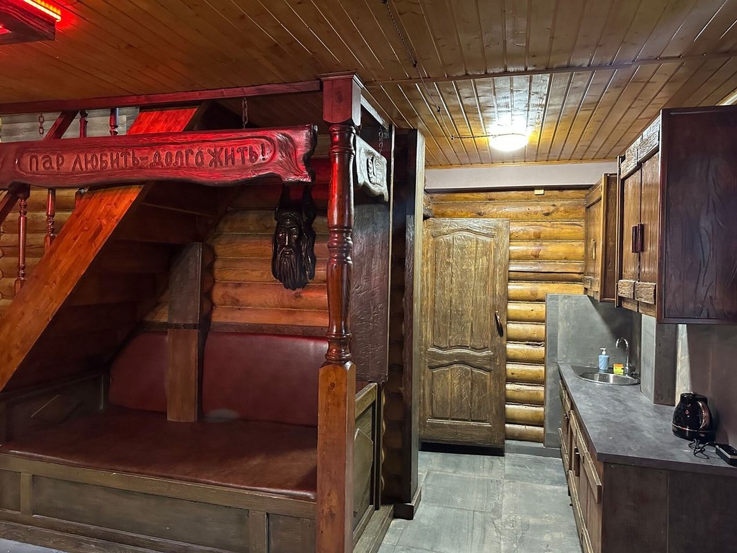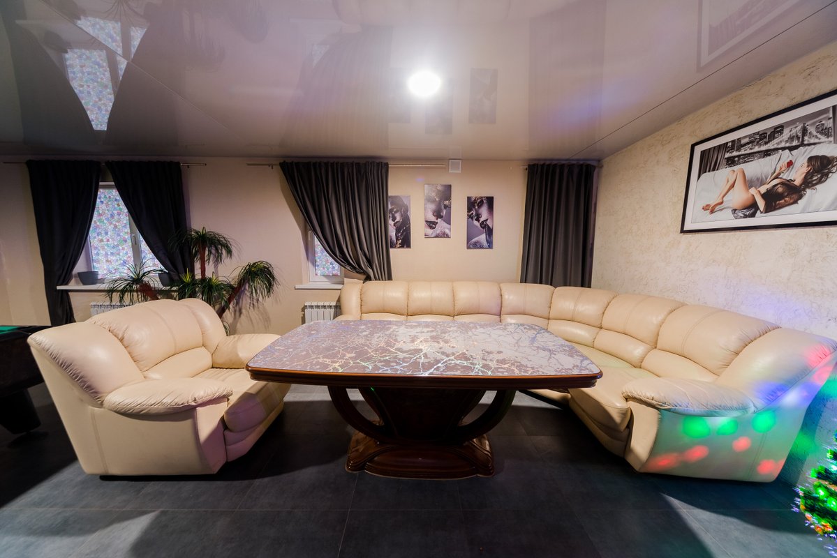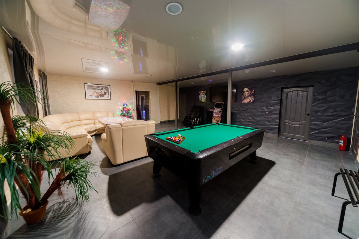 Не хочется в бассейн? Не проблема! Вместо этого можно провести время в нашей комнате отдыха. Мы ставили своей целью создать здесь уютный, практичный интерьер из преимущественно натуральных, экологичных материалов, выбрать мебель, которая будет в равной степени удобной и приятной глазу. Надеемся, что вам понравится! Для поддержания атмосферы отдыха у нас есть бильярд, кальян и караоке. Мы не располагаем собственной кухней, но не возражаем, если вы принесете еду с собой и совместите баню с небольшим застольем. Только не забывайте, что плотная трапеза непосредственно перед посещением парной - это не самая удачная идея, по мнению врачей. А вот после парной можно трапезничать смело!